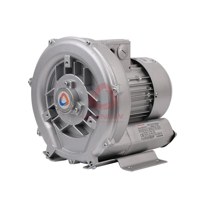 當葉輪轉(zhuǎn)動時,由于離心力的作用,風向標促使氣體向前向外運動,從而形成一系列螺旋狀的運動。葉輪刀片之間的空氣呈螺旋狀加速旋轉(zhuǎn)并將泵體之外的氣體擠入(由吸氣口吸入)側(cè)槽,當它進入側(cè)通道以后,氣體被壓縮,然后又回復到葉輪刀片間再次加速旋轉(zhuǎn)。當空氣沿著一條螺旋形軌道穿過葉輪和側(cè)槽時,每個葉輪片增加了壓縮和加速的程度,隨著旋轉(zhuǎn)的進行,氣體的動能增加,使得沿側(cè)通道通過的氣體壓力進一步增加。當空氣到達側(cè)槽與排放法蘭的連接點,氣體即被擠出葉片并通過出口消聲器排出泵體。