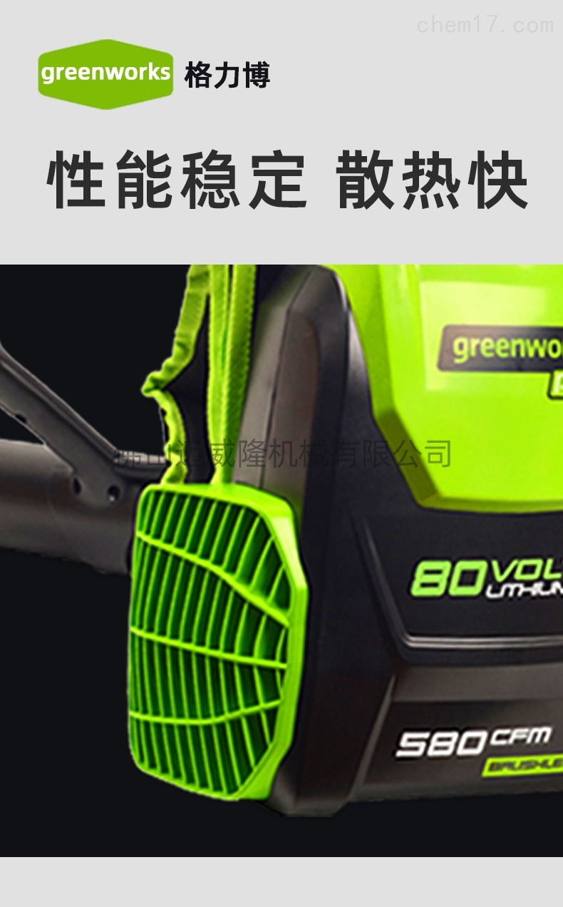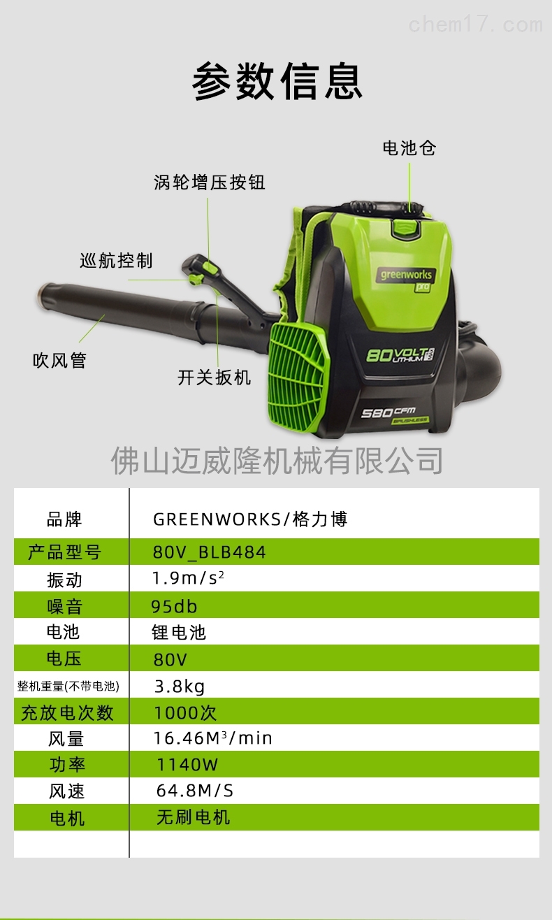 Glebe 80V blb484背包式吹風(fēng)機(jī)產(chǎn)品參數(shù):品牌:greenworks/Glebe產(chǎn)品型號(hào):80V_blb484振動(dòng):1.9m/S2噪音:95dB電池:鋰電池電壓:80V機(jī)器重量(無(wú)電池):3.8kg充放電次數(shù):1000倍風(fēng)量:16.46m3/min功率:1140w風(fēng)速:64.8m/s電機(jī):無(wú)刷電機(jī)