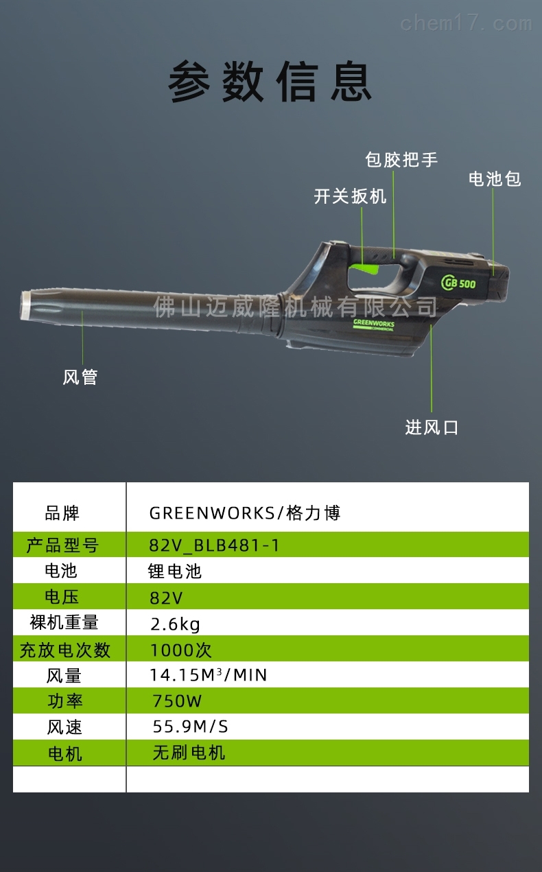 Glebe便攜式吹風(fēng)機(jī)blb481-1鋰吹灰器82v吹雪器森林滅火器產(chǎn)品參數(shù):品牌:greenworks/Glebe產(chǎn)品型號(hào):82v_blb481-1電池:鋰電池電壓:82v裸機(jī)重量:2.6kg充放電次數(shù):1000倍風(fēng)量:14.15m3/min功率:750W風(fēng)速:55.9m/s電機(jī):無(wú)刷電機(jī)
