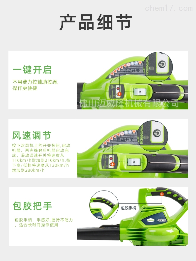 產(chǎn)品特點(diǎn):glebe 40V鋰電池抽風(fēng)機(jī),兩用,一鍵啟動(dòng),無(wú)刷電機(jī),壽命長(zhǎng),鋰電池,大功率。它有一年保修,靈活輕便。一臺(tái)機(jī)器可以用于多種目的。它可以用于吹掃和抽吸。本實(shí)用新型吸力強(qiáng),噪音低,省時(shí)省力。吹吸兩用,操作方便,無(wú)需加油,方便快捷,風(fēng)速調(diào)節(jié),風(fēng)速可多檔調(diào)節(jié);吹吸模式,吹吸雙模式切換。連接集塵袋,便于清潔。風(fēng)嘴具有較寬的吹吸面積,較寬的吸出口有效地增加了吸塵面積。
