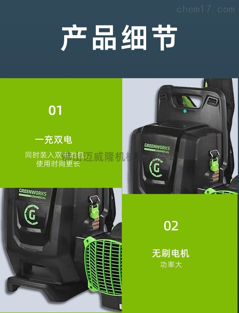 產(chǎn)品特點(diǎn):glebe 82v背包式吹風(fēng)機(jī),雙電池倉(cāng),一鍵啟動(dòng),無(wú)刷電機(jī)。它具有低噪音、雙電池室、長(zhǎng)壽命、低能耗、渦輪增壓、靈活性和便攜性的特點(diǎn)。一年保修,靈活輕便,可調(diào)節(jié)風(fēng)速,續(xù)航時(shí)間長(zhǎng),雙電池,高功率。適用于建筑工地吹渣、溫室吹雪、風(fēng)力滅火、道路清潔、衛(wèi)生清潔等。82v雙鋰電池吹風(fēng)機(jī),與雙電池同時(shí)安裝,使用時(shí)間更長(zhǎng),靈活輕便,具有巡航控制。使用地點(diǎn):在道路上吹礫石,在溫室里吹雪,在物業(yè)社區(qū)里吹落葉,森林滅火,風(fēng)力滅火。
